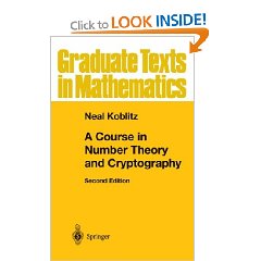 N. Koblitz: A course in Number Theory and Cryptography (Graduate texts in Mathematics). Springer.