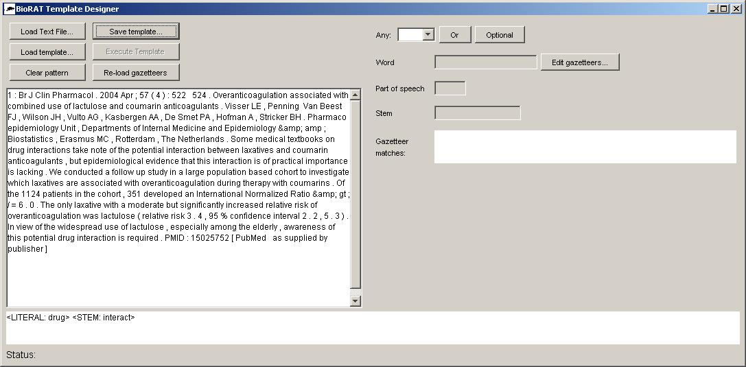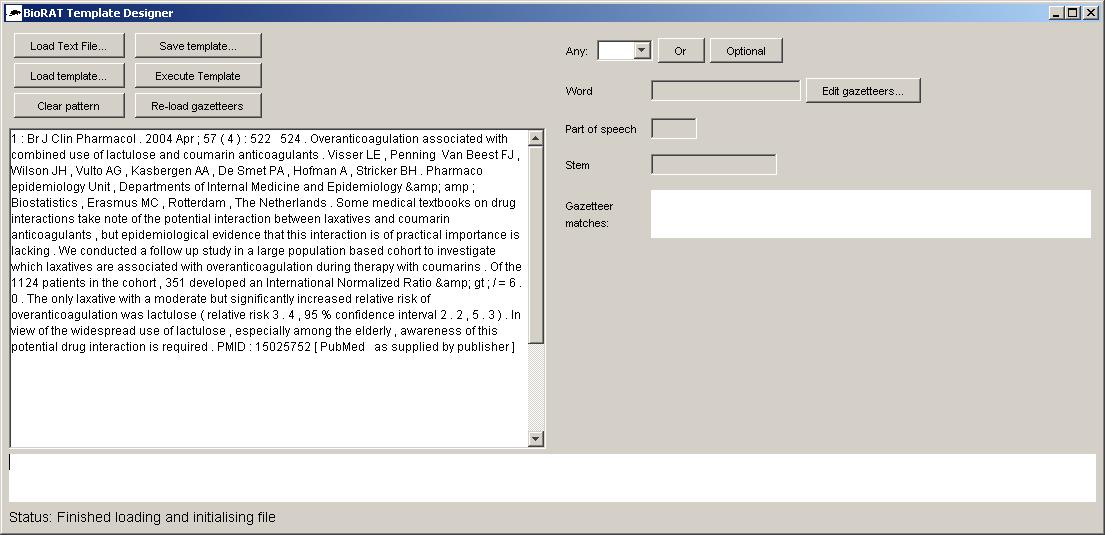 Click "Load text File" and select abstract 15025752_abs.txt (distributed with BioRAT) |