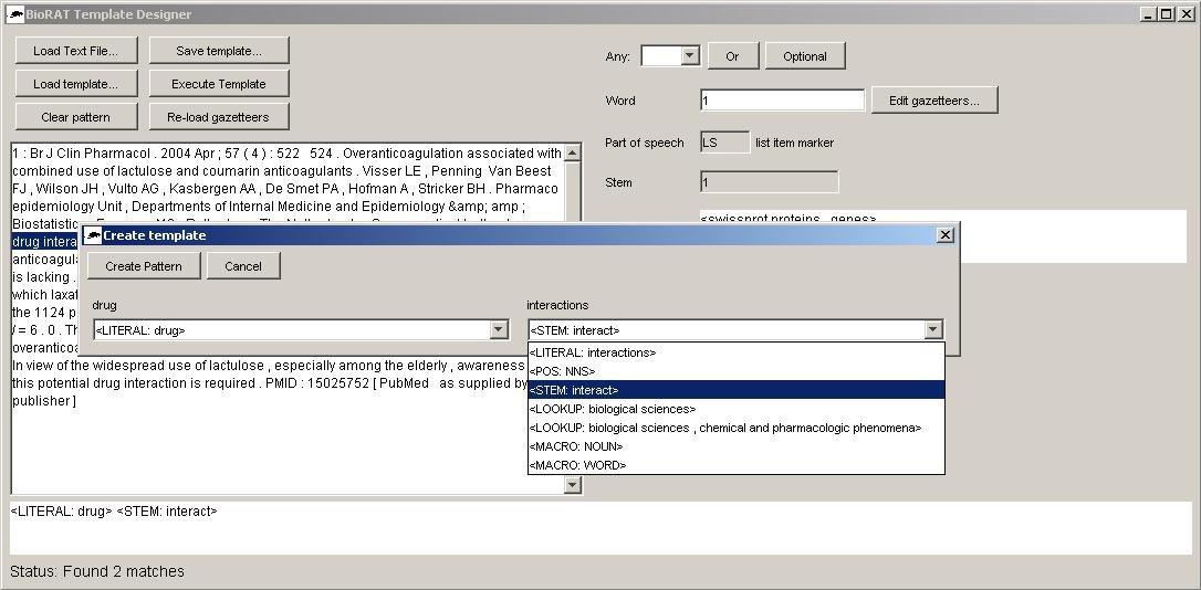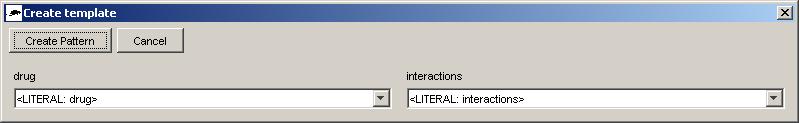Use the drop down boxes to select <LITERAL:drug> and <STEM: interact> |
